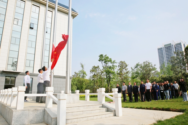 公司舉行慶?!拔逡弧眹H勞動節(jié)升國旗唱國歌儀式